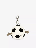 Amuseables Sports Football Bag Charm est le parfait compagnon de jeu en douce fourrure crème et noire. Avec des segments géométriques et une corde fine, ce ballon de football a une pince argentée et une étiquette Jellycat parfaite pour tout sac à main ou sac à dos. Le cadeau idéal pour tout fan de football. ( Football Porte clef )