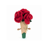 Le bouquet de roses Amuseables est le cadeau floral qui ne cesse d'être offert. Un trio de douces roses rouges en pleine floraison, avec des feuilles en suédine verte et des tiges aux détails piqués, est enveloppé dans du lin beige. Noué par un ruban et orné d'un sourire brodé, cet emballage est doté d'un cordon fin qui permet de faire des câlins sans épines. ( Bouquet de Roses )