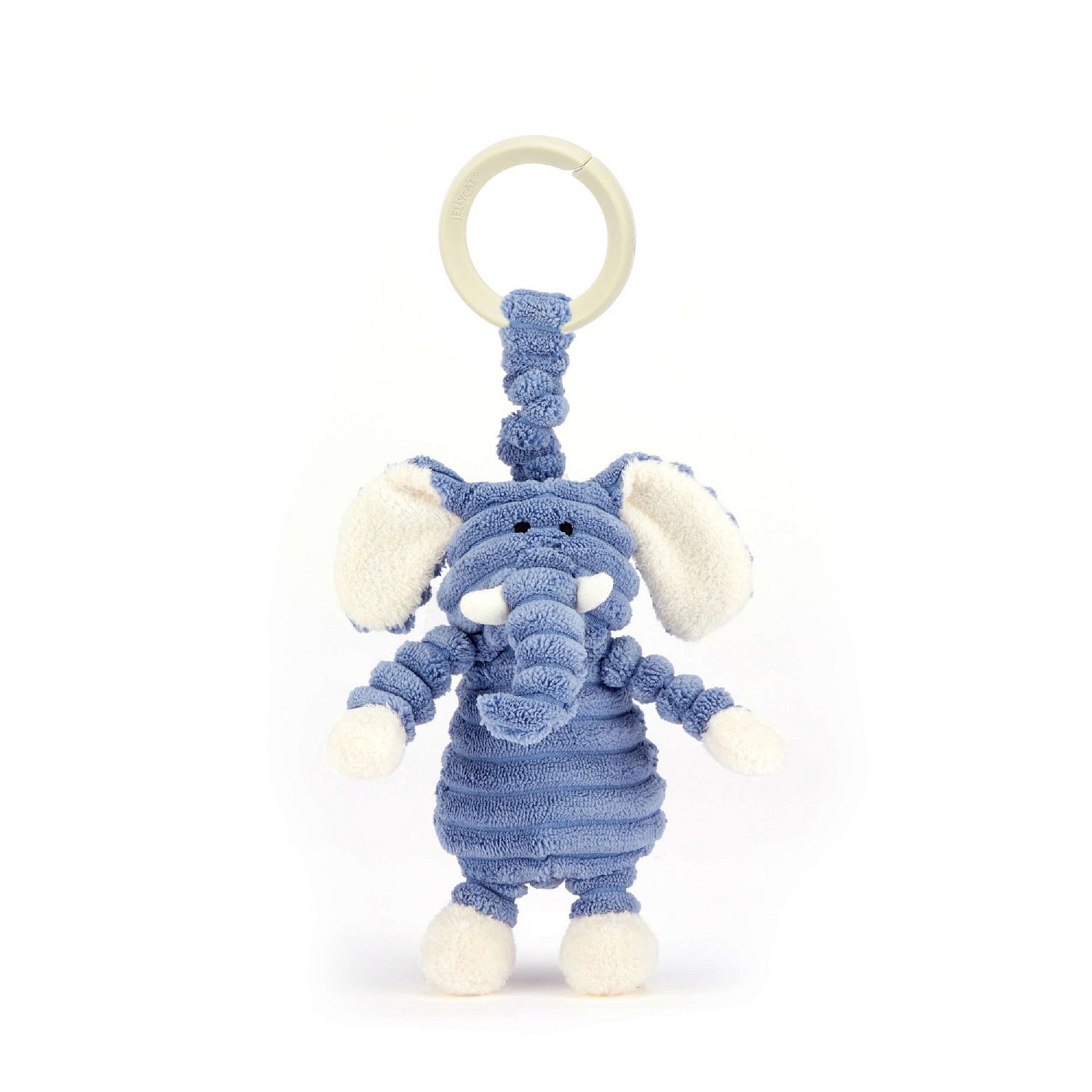 Cordy Roy Baby Elephant Jitter est plein de rires et prêt à gigoter. Ce fauve est impatient de se faire des amis parmi les bébés dans les poussettes et les petits dans les lits. Les petites mains peuvent l'attraper et le tirer pour le faire danser un rythme de renard ! Sa fourrure orange-crème a une texture extraordinaire et ses yeux sont cousus pour plus de sécurité. Il est donc parfait pour faire des câlins !