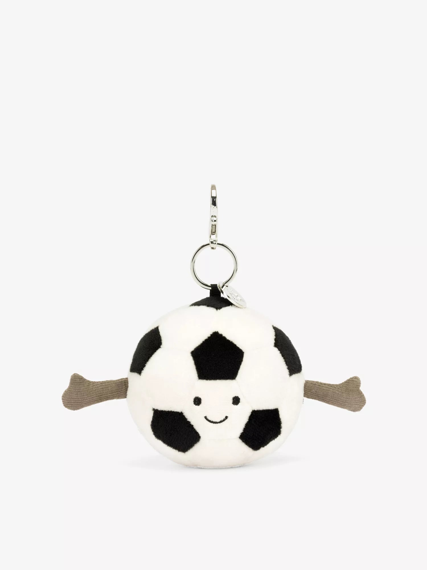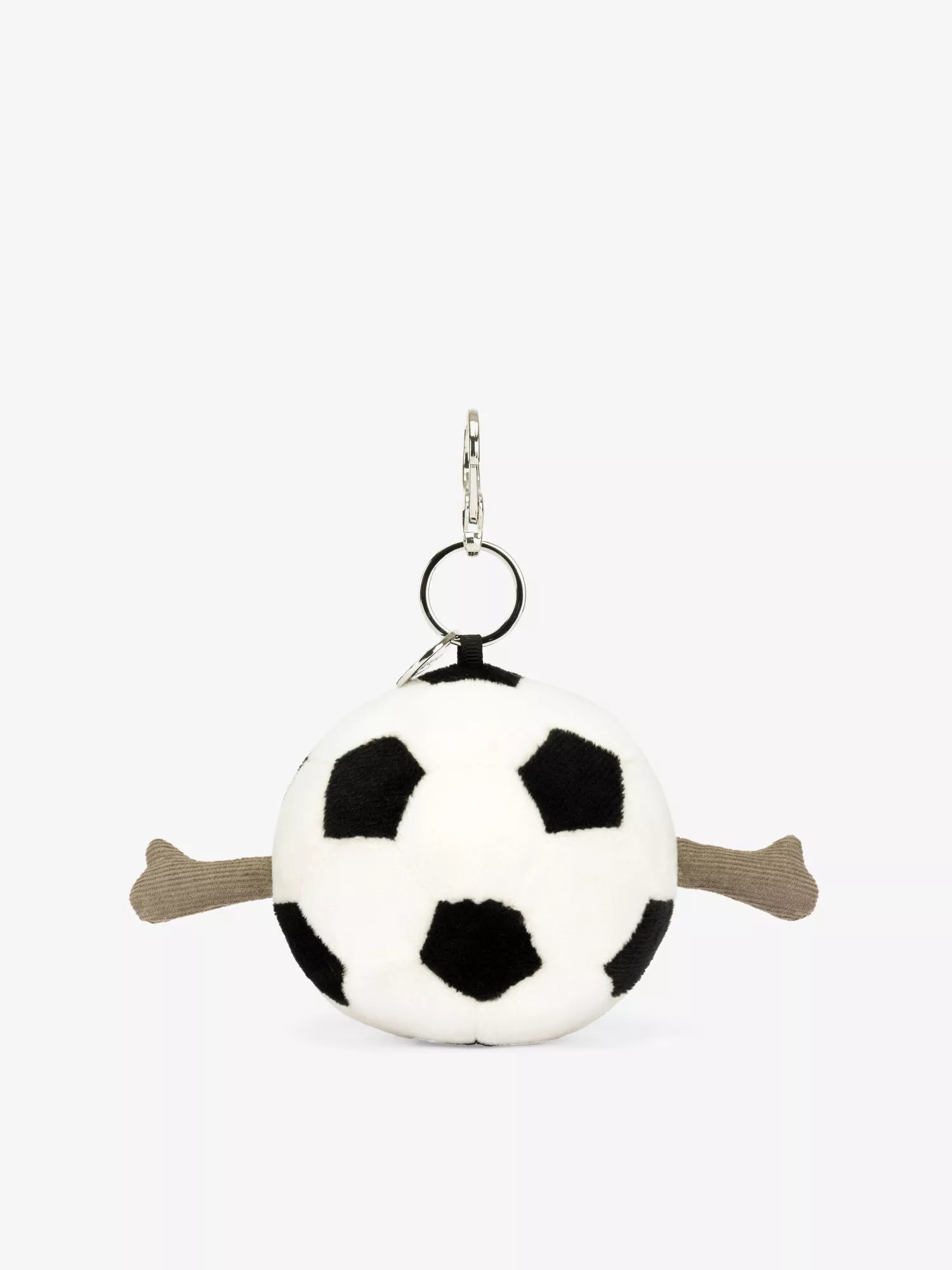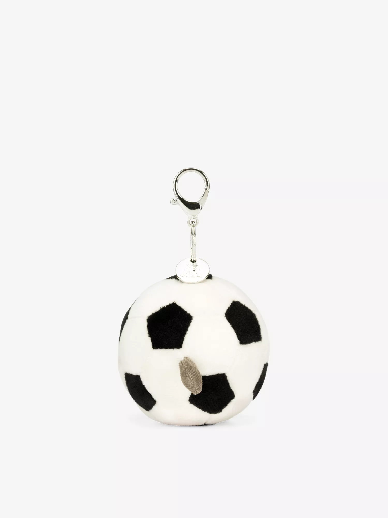 Amuseables Sports Football Bag Charm est le parfait compagnon de jeu en douce fourrure crème et noire. Avec des segments géométriques et une corde fine, ce ballon de football a une pince argentée et une étiquette Jellycat parfaite pour tout sac à main ou sac à dos. Le cadeau idéal pour tout fan de football. ( Football Porte clef )