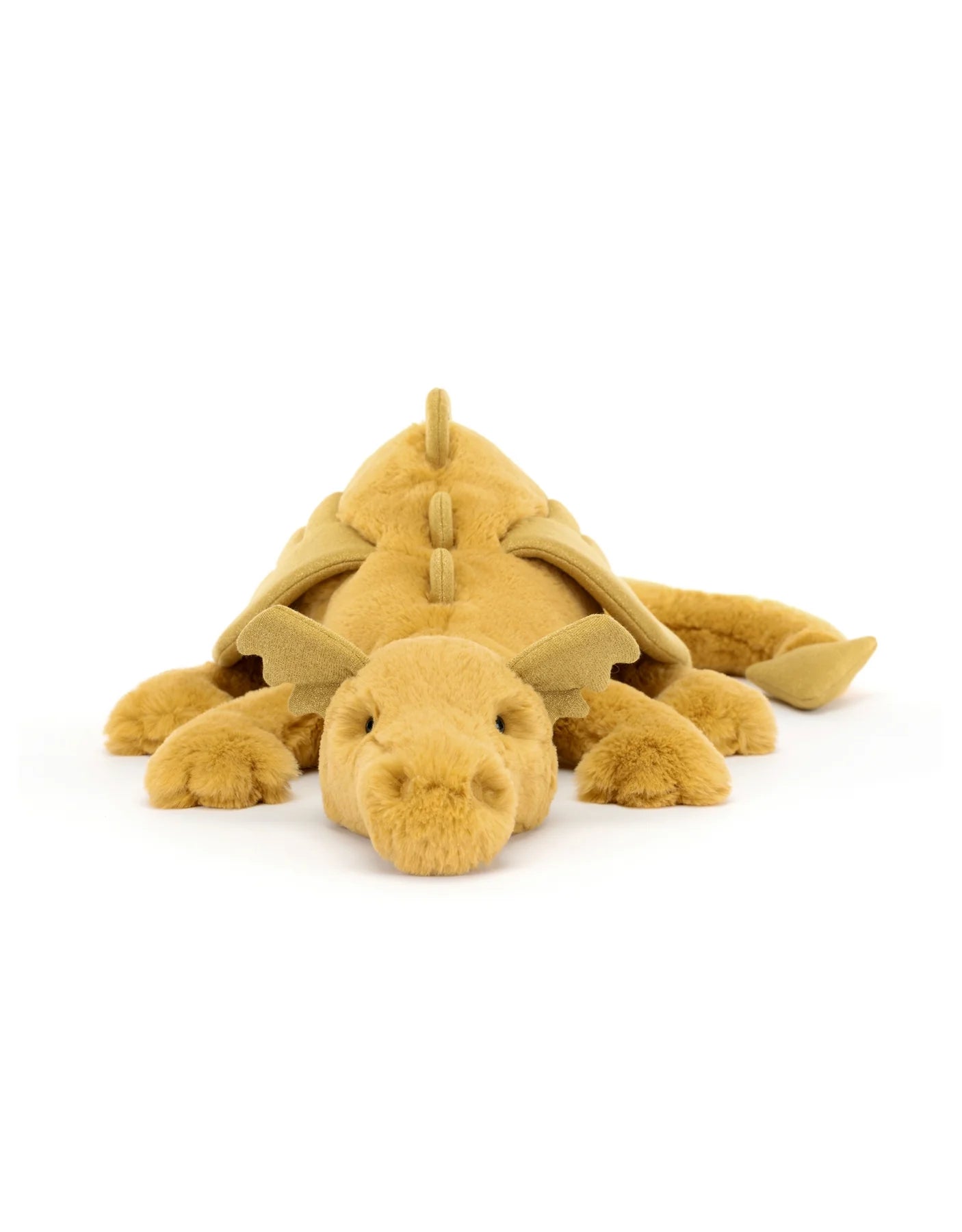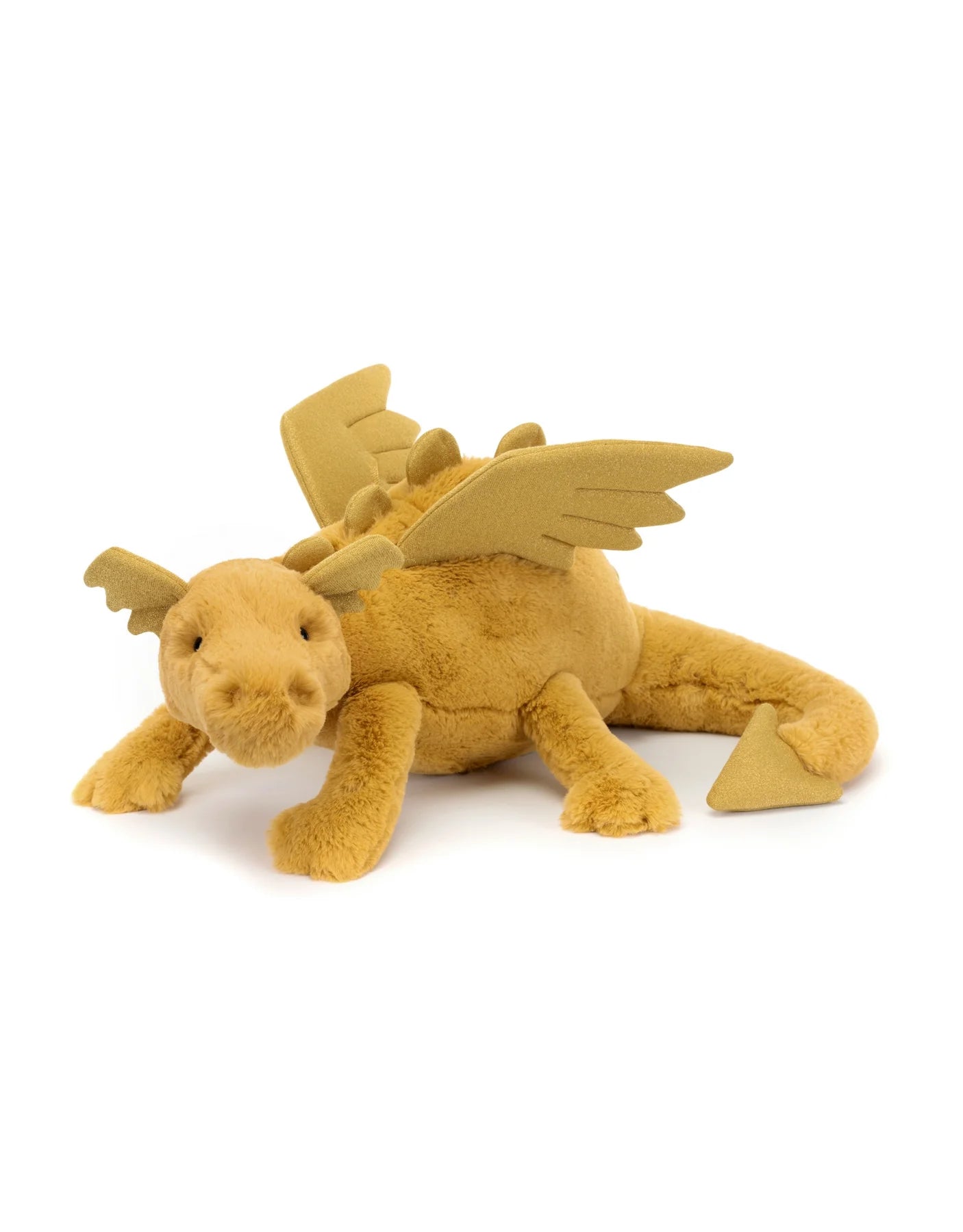 Bring a little luck wherever you go with the Golden Dragon. This cozy dragon has golden fur, sparkly jersey wings and ears, and a soft curved tail with a sparkly tip. This dragon is a real treasure. (Dragon)