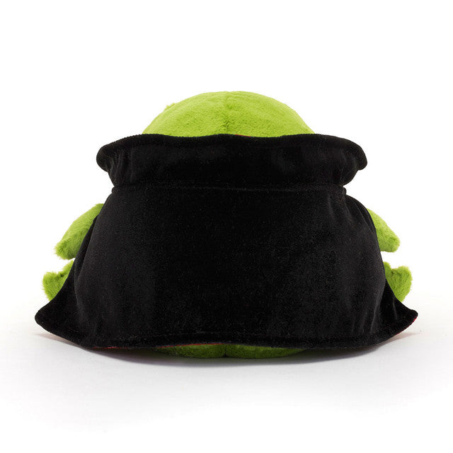If you go to the haunted pond, you might meet the vampire Ricky Rain Frog! All dressed up for Halloween (although he doesn't really like either option), Ricky the Vampire has embroidered cream-colored fangs. His spectacular cape has a large black collar, red satin lining, and a ribbon tie - no wonder he looks so serious! (Vampire Frog)