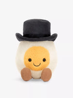 ¡El novio con huevo hervido de Amuseables no puede esperar para decir "Sí, quiero"! Con su pelaje ultrasuave color crema y amarillo, y su sombrero de copa de gamuza con banda de satén negro, ¡este huevo camina hacia el altar con patas de cordón color cacao! ( Huevo )