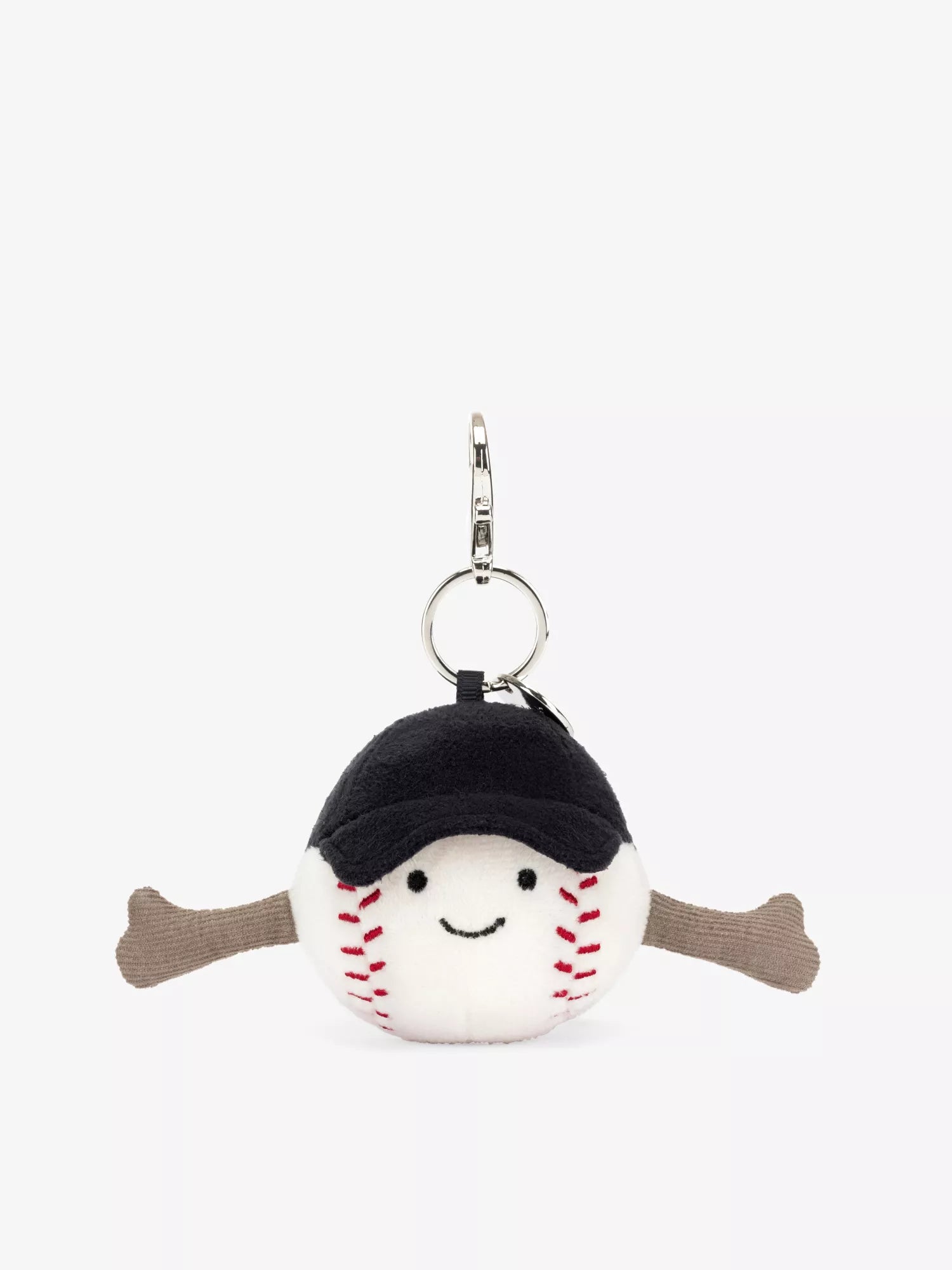 Amuseables Sports Baseball Bag Charm est le parfait compagnon de jeu en douce fourrure crème. Avec des coutures rouges et une casquette bleu marine, ce porte clef de baseball est munie d'une pince argentée et d'une étiquette Jellycat, parfaite pour un sac à main ou un sac à dos. Le cadeau idéal pour tout fan de baseball. ( Baseball Porte clef )